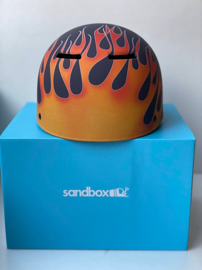 可能な限り見た目が小さくなるように、無駄を削り取る作業を経て誕生したキャップスタイルのヘルメットです。ゴテゴテとした、いかにも”プロテクター”といった感じのヘルメットとは一線を画す、シンプルできれいな曲線を描くデザインはSANDBOXのこのヘルメットでしか表現できません。