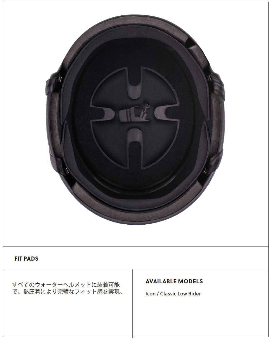 すべてのLOWRIDERヘルメットのウォータースポーツフィットパッドは、耐久性と速乾性を兼ね備えた伸縮性のある素材を使用しています。